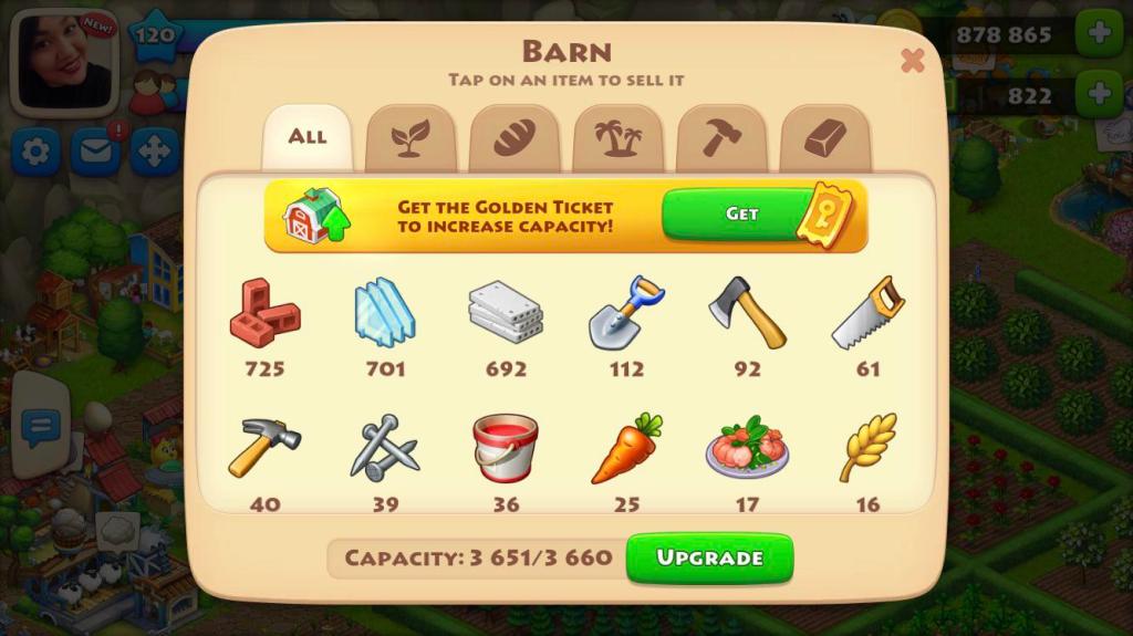 Trust me, your barn is EVERYTHING in this game. You need space to store crops, goods, and building materials. If you don’t upgrade your barn often, you’ll get stuck real quick. Make collecting barn upgrade items like nails, hammers, and paint a top priority.